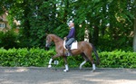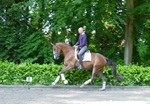 Bereits gut angeritten und absolut amateurtauglich, ausgestattet mit guten Grundgangarten mit hervorzuhebenden Schritt und immer aktivem, unter den Schwerpunkt fußendem Hinterbein, dürfte sie jetzt in ein neues Zuhause umziehen.
