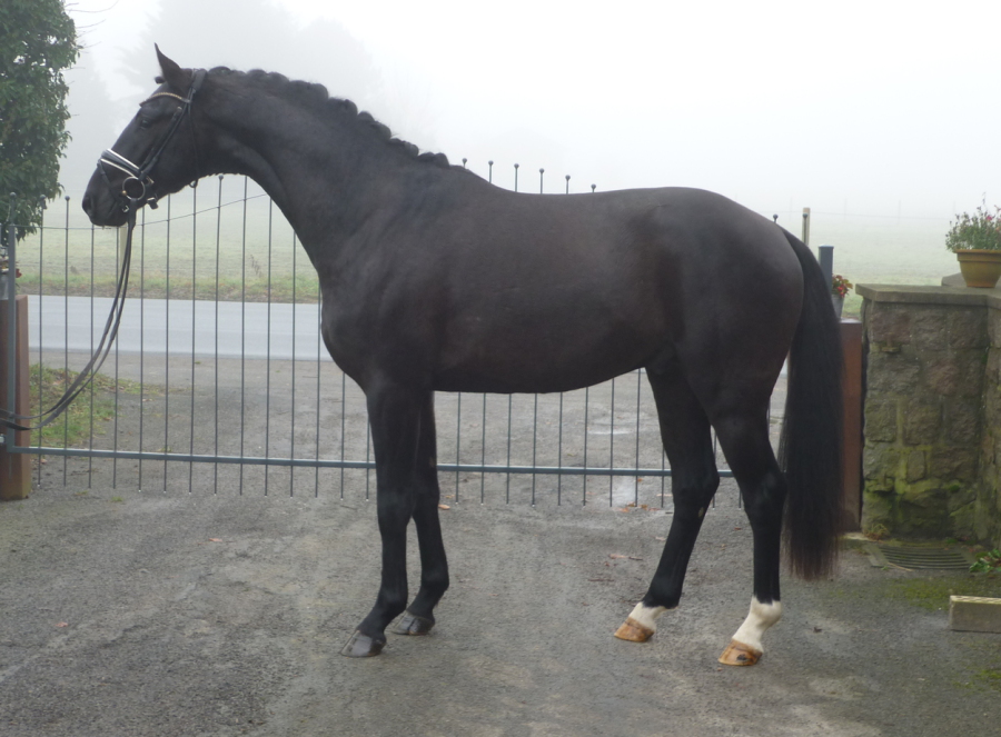 Aus eigener Zucht entspringt dieser Rappe mit allerbesten Dressurgenen.